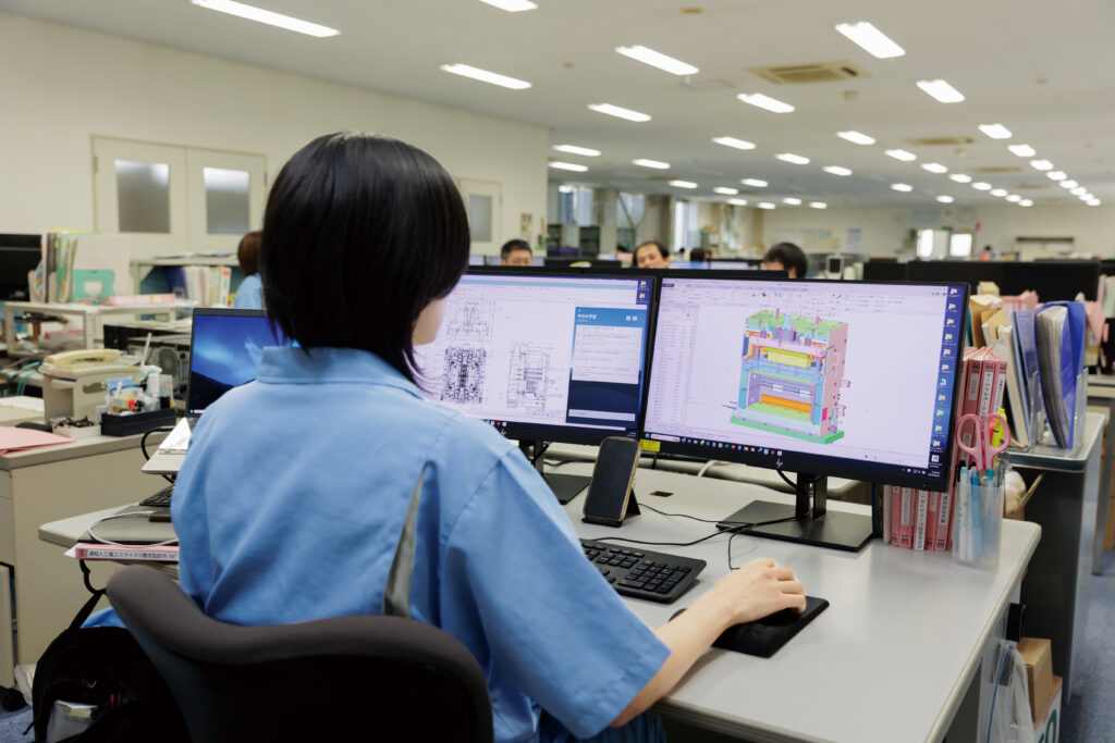 金型設計の仕事は一人で完結するものではなく、さまざまなことを考慮して設計する必要があります。お客様の要望を満たすことはもちろんですが、加工時間ができるだけ短くなるような構造にするなど、製造工程まで意識することも大事にしています。