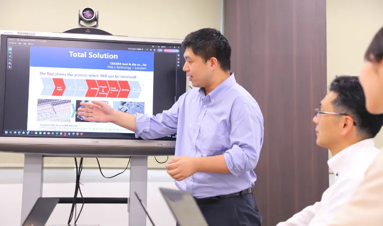 入社後はまず、先輩営業に同行しながらお客様とのやりとりを学びます。打ち合わせの準備や見積もり作成のサポートをしつつ、社内の設計・製造部門とも関わりながら、金型ができるまでの流れを理解していきます。技術的な知識も身につける必要がありますが、わからないことは先輩が丁寧にフォローしてくれるので安心して成長できます。